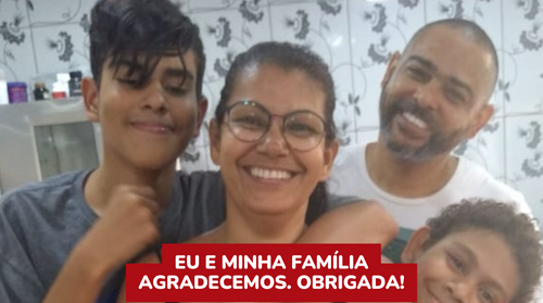 A sua ajuda pode me dar forças para continuar. Sou imensamente grata a cada gesto de solidariedade. Deus acima de tudo.