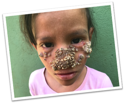 Estas lesões na pele de Mavi, são causadas por fungos.