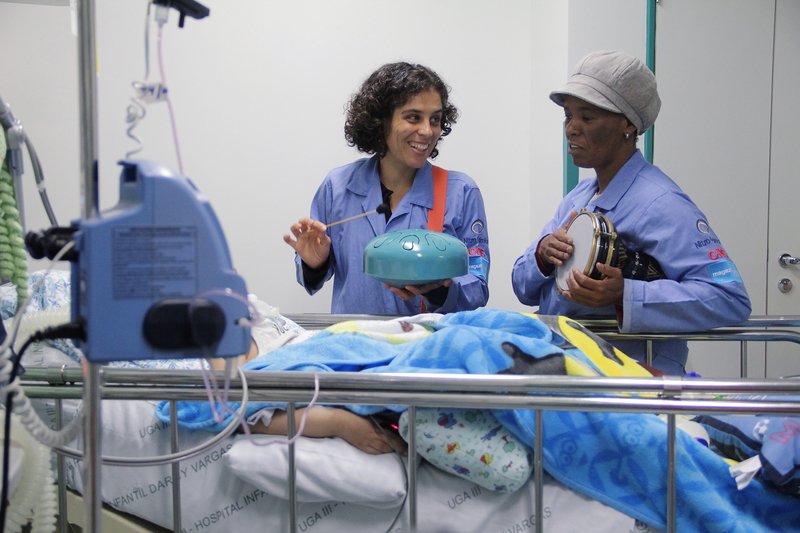 Com a narração de histórias e a música, o paciente além de resgatar memórias, minimizar medos, angústias e sofrimentos, fortalece vínculos e se reconecta com a sua vida fora do hospital, modificando seu estado de espírito.