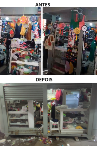 Somos artesãs, fazemos artigos em crochê, brincos, roupas, acessórios, itens para casa e variedades. Temos alugada uma pequena banca no centro da cidade, ela foi invadida de madrugada no fim de semana, levaram todos os produtos que produzimos e vandalizaram o que não conseguiram levar, perdemos todo nosso material de trabalho.