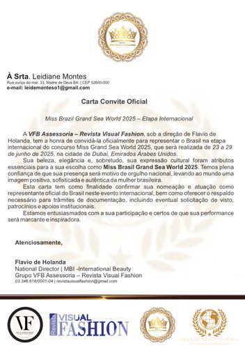 Meu nome é Leidiane Montes, tenho 32 anos, nasci em Salvador (BA) e fui criada em Madre de Deus. Desde pequena, minha essência respira arte. A moda sempre esteve presente na minha vida, desde criança. Ao longo da minha adolescência acabei me desconectando da arte e, com isso, de mim mesma. Tornei-me uma adulta ferida emocionalmente, sem identidade, sem reconhecer meu valor.Aos 30 anos, com a ajuda da terapia, iniciei um processo de cura e reencontro com a moda. Redescobri quem eu era e o que pulsava em mim. Tive medo, vergonha, afinal: mudar aos 30? Ser modelo depois de “velha”? Mas já não era mais a adolescente perdida — eu era uma mulher determinada, corajosa, como minha criança sempre foi.Em fevereiro de 2025 chego ao Miss Universe Brasil, uma das maiores franquias de concursos de beleza do Brasil, para representar o estado da Bahia. A consagração como Miss Universe Bahia 2025 transformou minha vida e meu trabalho. Fui uma das duas únicas mulheres pretas retintas da edição, e a única com cabelos crespos naturais. De volta à Bahia, recebi o convite para representar o estado e o Brasil em Dubai, Paris e na Grécia. Escolhi Dubai!Em junho, levarei comigo a história de um povo, representando o Brasil no Miss Grand Sea World.Mas para isso acontecer precisarei levantar o valor de 70.000,00 para custear toda a viagem que acontecerá dia 23 de junho de 2025 e terá duração de 10 dias de confinamento. Hoje, não tenho esse dinheiro disponível, mas sei que através da bênção do Eterno Senhor e da disposição de cada um de vocês em contribuir com este sonho, irei realizar um dos maiores sonhos da minha vida. Que é fazer carreira internacional como modelo. Aaaaaa... gente, eu já sou muito grata por todos vocês que já estão me apoiando e já deixo aqui toda minha gratidão. Você também pode me ajudar compartilhando com seus amigos e com empresas que possam também contribuir ou ser um patrocinador. Segue a descrição dos valores necessários:1- Emergencialmente necessito de 250 euros ou R$1600,00 para dar entrada na franquia do concurso que já venceu a data de pagamento e recebi um novo prazo até o dia 06/05/2025.2- Restante da franquia R$18.875,00.3- Passagens R$30.000,00. Obs: esse valor pode mudar a depender da data de compra.