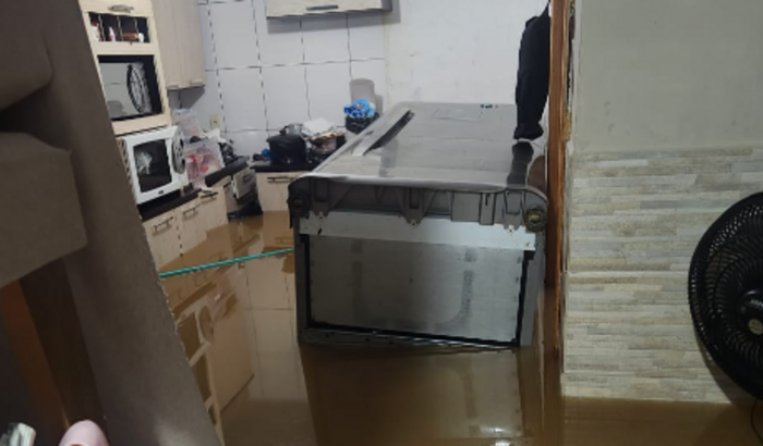 A situação é muito triste! Imagina o quanto é difícil ver TUDO o que você tem indo embora. O Riddle perdeu 90% dos móveis da sua casa.A geladeira virou e toda a compra de NATAL / FINAL DE ANO foi perdida.Atualmente está desalojado, na casa de um vizinho, precisa ajudar com alimento, despesas, etc.
