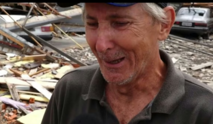 Gilberto 64 anos, Casado, morador de Rio Bonito do Iguaçu, no centro-sul do Paraná perdeu tudo que construiu na vida durante o tornado 07/11 que destruiu 90% da cidade, Gilberto se emocionou ao explicar que durante a tempestade se abrigou ver tudo