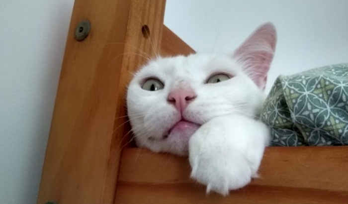 O gatinho da foto se chama Suspiro e ele tem quase 8 anos. Recentemente, tem sentido muita dificuldade para fazer xixi e feito suas necessidades fora da caixinha (em pilhas de roupa, panos, etc.). Problemas urinários em gatos tendem a ser bem preocupantes, pois são animais muito sensíveis nesse quesito (sem contar que o comportamento anormal de uso da caixinha é um indicativo de incômodo).