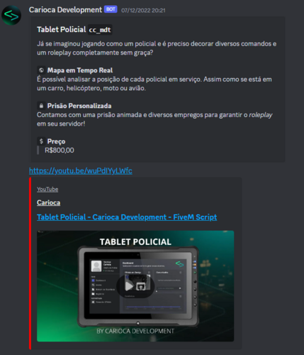 Eae rapaziadinha, essa vaquinha é pra adquirir um script de tablet policial para nossa policia, isso vai facilitar muito pra todos, todas gestão da policia sera feita por esse tablet, quem puder ajudar com qualquer valor vai fortalecer muitoLink do Discord da loja aonde sera adquiridohttps://discord.gg/SFamb3Kk
