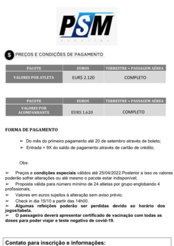 O campeonato será em Milão Itália, e cada atleta tem que arcar com os custos da sua viagem, ou seja em EURO!