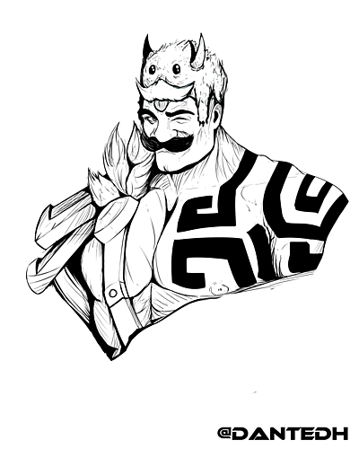- Me chamo Gustavo Dante, sou ilustrador e faço arte para tattoo de uso gratuito no meu instagram(@dantedh), sou formado na área de Design de Games e eu sempre estive imerso nesse universo. Como artista eu quis atribuir algo que pudesse representar parte do que eu sou e parte do que eu vivi, então eu tenho um projeto que envolve ilustrar todos os campeões de league of legends para o LoL como um design para tattoo.