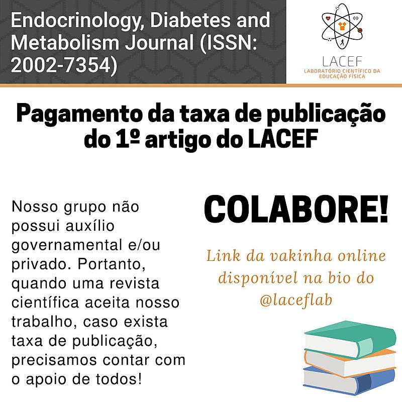 Você estará contribuindo para o pagamento da taxa de aceite do primeiro artigo científico do LACEF-Laboratório Cientifico da Educação Física. Nosso grupo não possui auxílio governamental e/ou privado para arcar com taxas de aceite de revistas científicas e precisamos do seu apoio. Vivemos apenas do sonho de produzir ciência, junto aos nossos alunos e estes, vivem o sonho de se tornarem cientistas e retribuir à comunidade. Portanto, quando alguma revista científica aceita nosso artigo, caso exista taxa de publicação, precisamos contar com a colaboração de todos. Obrigado pelo seu apoio!