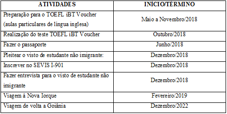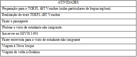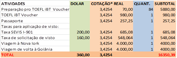 O passaporte, a solicitação para o visto de estudante não imigrante, e a viagem de ida são necessários para viajar ao campus do conservatório onde farei os estudos nos Estados Unidos, e a viagem de volta a Goiânia, que, ao mesmo, soma-se, na entrevista para o visto, aos argumentos que precisam declarar a intenção de voltar ao país de origem após a conclusão dos estudos.