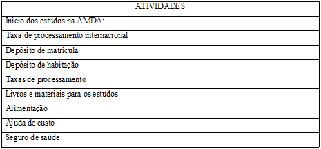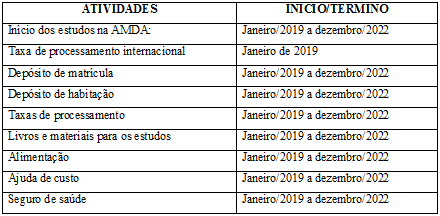 O custo do curso e a acomodação serão integrados após a conclusão da admissão e a matrícula, já sendo eu uma candidata à bolsa de estudos do conservatório, conforme o primeiro contato da Admissão. Portanto, não incluo estes custos no orçamento deste projeto.