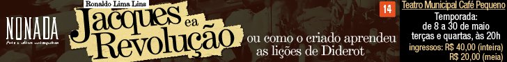 RECOMPENSA 2 – Nome como colaborador desse financiamento nos agradecimentos na fanpage do espetáculo. Você recebe ainda o programa e cartaz do espetáculo, 1 ingresso em dia a combinar e mais o livro da peça "Jacques e a Revolução". Valor da colaboração: R$ 60,00.