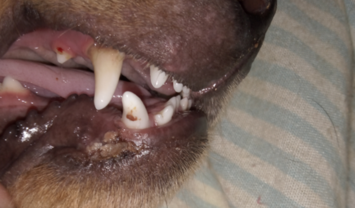 Meu nome e Carla, estou aqui para pedir uma ajuda para fazer uma cirurgia no meu cão que correndo atrás de um cavalo levou om coice na boca e teve um pedaço da mandíbula e dentes quebrados . A cirurgia ficou em 1300 reais. Eu não tenho condições de fazer.