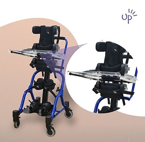 Estabilizador "Up" Esse Estabilizador auxilia a criança a ficar na posição vertical (em pé) e proporciona vários benefícios à criança e também a família. Exemplos:Estimulo do controle do tronco;Formação do tecido ósseo;Melhora de equilíbrio postural e da estabilidade pélvica;Fortalecimento muscular;Formação do acetábulo (prevenindo subluxação e luxação de quadril);Simetria do sistema muscoesquelético.Integração social.