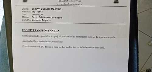 Sou a Rafaelli mãe do Ravi! Vou contar a história do meu filho. Ravi atualmente está com 6 meses, nasceu lindo e saudável, passando os dias, percebemos que nas suas fezes começou a sair sangue, entre idas e vindas de medicos, descobriramos que ele é APLV, e também é alérgico à outros alimentos (carne vermelha, ovos, trigo, algumas frutas e legumes), poucos meses depois, levei Ravi ao pediatra em uma consulta de rotina e descobriu que ele tem também Nistagmo na vista, então a médica o encaminhou para uma oftalmologista e um neurologista, saímos das consultas com mais exames , pois a neurologista pediu urgentemente 1 Ultrassonografia tansfontanela, pois com apenas 4 meses a moleira dele já havia se fechado e a testinha dele está formando um triângulo para a preocupação de todos. A médica suspeitou de craniostenose, uma deformidade no crânio muito sério que precisa de cirurgia para correção, antes que o bebê venha ter sequelas irreversíveis . Sendo assim com arrecadações de doações e também venda de rifa, conseguimos juntar o dinheiro do exame da fontanela, e foi constado que realmente ele tem a craniostenose, e também para nossa surpresa Hidrocefalia. Vamos fazer agora uma TC do crânio e TC das órbitas (oftalmologista pediu, pois há um esbranquiçado em uma delas) para irem mais a fundo do quadro e saber quando e como vão fazer essa cirurgia. Não temos condição de arcar com todos os custos, essas TC o plano não cobre por causa da carência, e pelo SUS sem data para realizar os exames, então terei que pagar, tenho também o gasto da minha alimentação, que é muito alto o custo, mais preciso ter uma alimentação saudável ,pois eu ainda amamento, além do leite especial que ele tem que tomar NEOCATE, que graças a Deus consegui pegar os papéis para dar entrada pelo governo e pegar sem custo dia 23 de outubro a consulta para pegar os leites, tem o dinheiro entre idas e vindas ao médico, agora também temos esses exames para realizar as TC do Crânio , e TC dá órbitas . Peço encarecidamente para vocês nos ajude com a quantia que for, vou ser grata eternamente. Desde já agradeço por toda atenção.