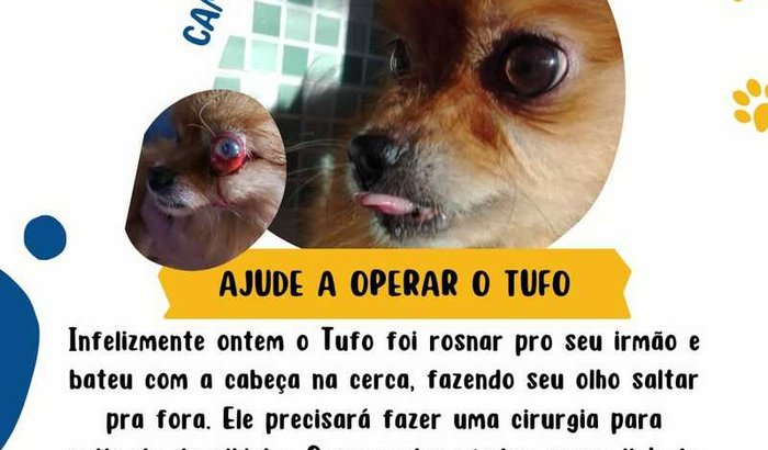 Olá e sou o Tufo, tuti, tutu, fui rosnar para outro patudinho na cerca e bati minha cabeça, machuquei meu olhinho e vou precisar fazer uma cirurgia, você pode me ajudar e ajudar as mamães ??? Qualquer ajuda e bem vinda 🥰🐶 ver tudo
