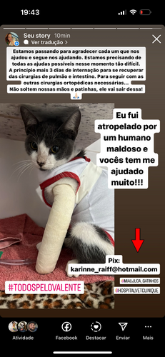 Eu sou Karinne Raiff, criei essa vaquinha para arrecadar R$7.000,00 para ajudar no tratamento do Valente, um gatinho de rua que foi brutalmente atropelado e largado na rua. Os custos estão altos e estamos fazendo o que está até além do nosso alcance, mas não poderíamos deixar ele naquele estado, e não estamos com condições de arcar com os gastos. Eu peço de coração a ajuda de todos e desde já eu sou eternamente grata a todos que puderem nos ajudar!