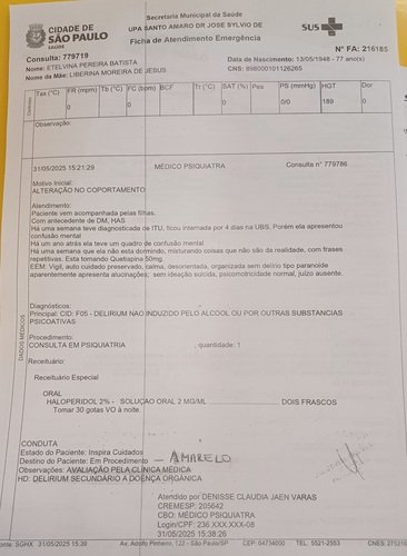Etelvina, uma mulher sempre forte e muito querida está passando por um momento muito delicado de sua vida e precisa de toda nossa ajuda! Após vários episódios de infecções urinárias, mesmo passando por internacões e muitos cuidados, desenvolveu um quadro de delirium, ou “síndrome orgânica cerebral aguda”. Ela tem dificuldades para realizar atividades do dia a dia e apresenta muita debilidade mental, necessitando de muitos medicamentos e cuidados 24 h. Suas despesas mensais giram em torno de 5.000 e nossas condições financeiras tem tornado o processo de recuperação muito mais lento e doloroso. Temos tentado utilizar o SUS mas muitas necessidades como exames nao conseguem aguardar o prazo que eles pedem.