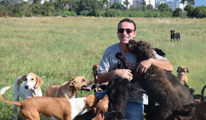 Vaquinha para ajudar o Reni Barboza e seus 129 cães resgatados das ruas. Atualmente ele utiliza 50 kg de ração por dia, esse mês está sendo um mês difícil, ele ganha somente meio salário mínimo de aposentadoria e mais 500 reais por vijiar o terreno de uma empresa próximo a ele. Sobrevive somente de doações. O governo não ajuda em nada. O valor que coloquei como meta é simbólico, esse é valor que ele gasta por mês com ração.