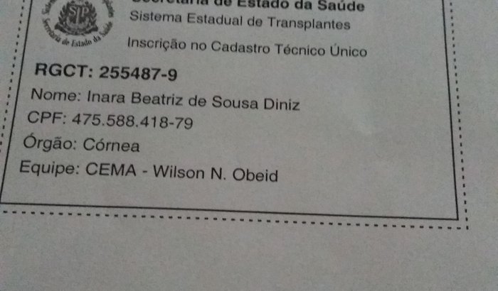Inara precisa de transplante de córnea nos dois olhos, esta na fila do transplante e hoje não dispomos de recursos para fazê lo em virtude disso necessito da vossa ajuda! Deus os abençoe!