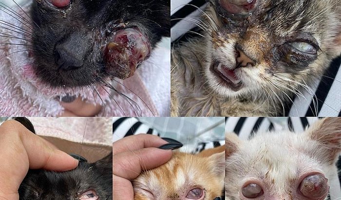 - TODOS OS GATOS ESTÃO DISPONÍVEIS PARA RESERVA DE ADOÇÃO RESPONSÁVEL E ESPECIAL, SERÃO ENTREGUES ASSIM QUE O TRATAMENTO ACABAR. ---ATUALIZAÇÃO: Os gatos melhoraram muito (não posso colocar todas as fotos aqui, me chamem no whatsapp) 3 vão ficar totalmente cegos e 1 precisa fazer uma cirurgia delicada para tentar salvar a visão, a cirurgia seria para o gato laranja da foto, seria para retirar a pelicula branca do olho, estamos procurando no preço popular, pois o valor está mais caro do que o valor total da rifa.