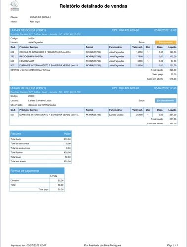 Segue todos os procedimentos e exames detalhados que foram feitos na nossa Akira: