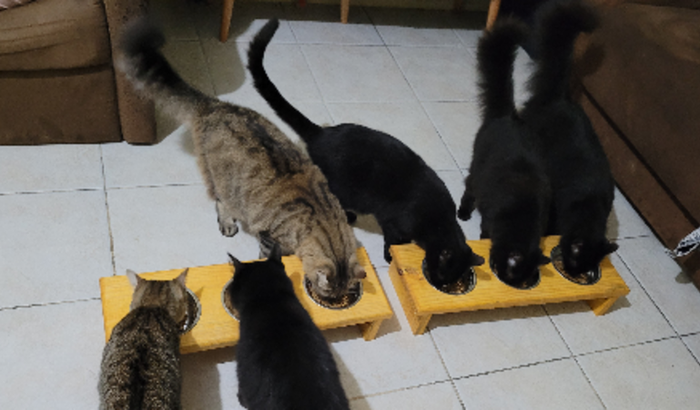 Possuo 8 gatos q são 2 mães com seus filhotes que foram resgatados e coloquei para adoção mas alguns foram adotados e esses acabaram não sendo e ficando comigo.