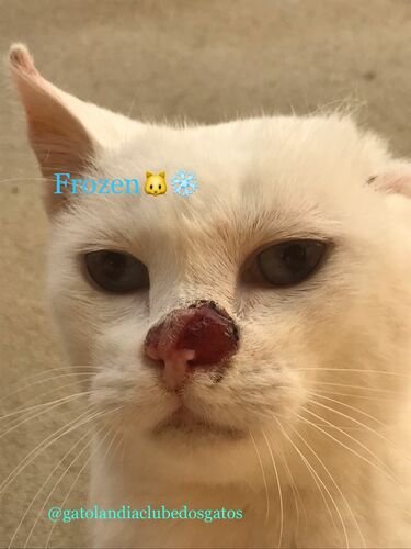 Frozen foi resgatada da rua em 2019 bem machucada, e por ser uma gata feral é muito agressiva, ela precisou ser adotada por nosso Abrigo. Porém Frozen chegou com câncer de pele / Carcinoma em sua orelha em estado grave e foi operada imediatamente, passando por uma Castração e Conchectomia total (Foto da Campanha). Após aproximadamente 3 anos se passaram e esse câncer reapareceu em seu focinho e na ponta da outra orelha, e está precisando urgente de procedimentos Oncológicos, Eletroquimioterapia, Cirurgia de Nosectomia, Conchectomia,, Exames de Sangue RaioX, Ultrassom e medicamentos. Todos esses procedimentos são necessários devido a amplitude de seu tratamento. Os exames laboratoriais serão coletados e feitos no Laboratório em Piracicaba - SP (onde residimos). A Radiografia e Ultrassonografia serão realizadas no Hospital FAS em Sorocaba - SP. Os procedimentos de Nosectomia, Eletroquimioterapia, Sondagem Esofágica, serão feitos com a Oncologista Dra Daiane e um Anestesista, e também serão realizados em Sorocaba mas em outra clínica. Os cuidados de pré e pós operatório, internação, manutenção serão realizados por mim (Médica especializada em Felinos), e se necessário a Conchectomia será realizada posteriormente.
