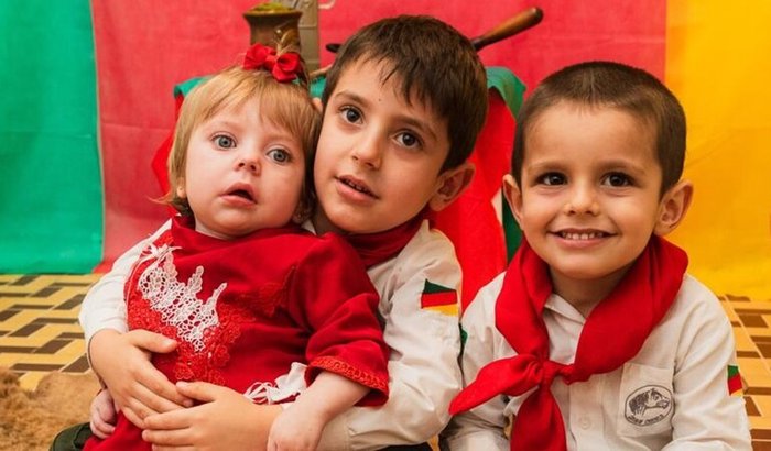 A Maria é a nossa filha mais nova. Ela tem dois irmãos: o Bernardo, de 6 anos, e o Antônio, de 4 anos. Eles adoram ajudar a cuidar da irmã e sonham com o dia em que ela possa brincar com eles.