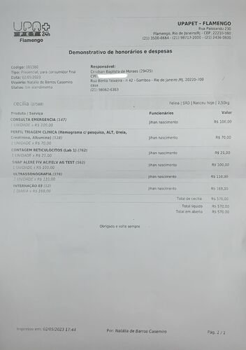 Pessoal, minha gatinha Cecília está passando por uma anemia grave e os médicos ainda não descobriram o que está causando. Ela está com sintomas preocupantes, como: falta de ar, falta de apetite, fadiga, inchaço no baço e fígado. Estamos investigando tudo para saber o que está causando esse quadro, mas os veterinários nos direcionaram a seguir com os tratamentos para que ela consiga resistir a essa anemia.