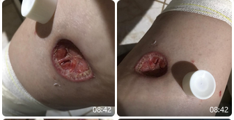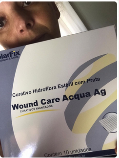 Há 50 dias iniciamos com o curativo inteligente, que você coloca na ferida e faz a troca e higienização a cada 5 dias e estamos tendo um resultado muito mais satisfatório, mas a caixa com 10 curativos custa R$ 1.200,00, sendo que uma caixa dá pra fazer o curativo em todas feridas, que retiro após 5 dias e utilizo uma outra caixa.