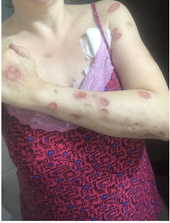 E a alergia já tinha tomado minhas pernas, barriga e costa.