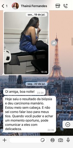 Meu nome é Fabiana Silva de Oliveira, e estou aqui em nome da minha querida amiga Thainá Fernandes Ramos, que está enfrentando uma batalha urgente contra o câncer de mama.
