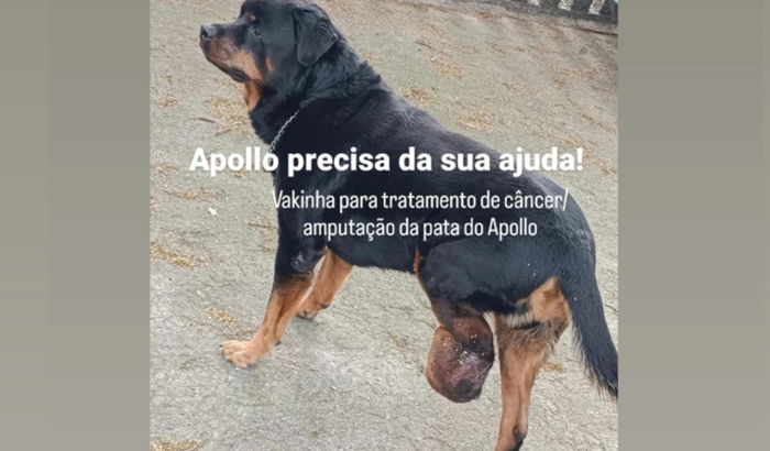 Apollo é um Rotweiller que perdeu sua tutora há um ano e desde então, além do sofrimento emocional, desenvolveu um cancer na sua patinha esquerda. Ele tem sido cuidado pela família da tutora e precisará de amputação e internação de 10 dias. A cirurgia e internação ficarão em R$ 10.000,00 e estamos precisando de ajuda!