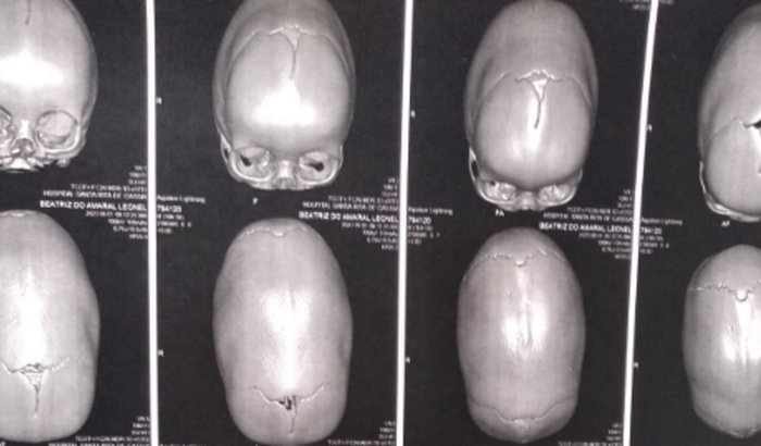 Bia foi diagnosticada com escafocefalia, que é um tipo de craniossinostose e trata-se de uma má-formação no crânio do recém-nascido devido ao fechamento precoce das suturas, neste caso, houve o fechamento da sutura sagital, localizada no topo do crânio.