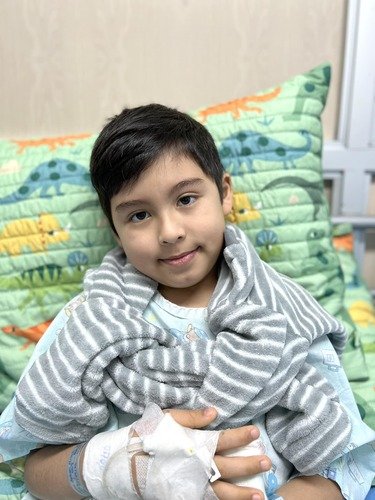 Hoje, aos 7 anos, ele teve uma recorrência, mas com outro tipo de leucemia mais forte e resistente à quimioterapia, então a única opção é levá-lo para a Espanha para que com outros medicamentos e tratamentos possam salvá-lo.