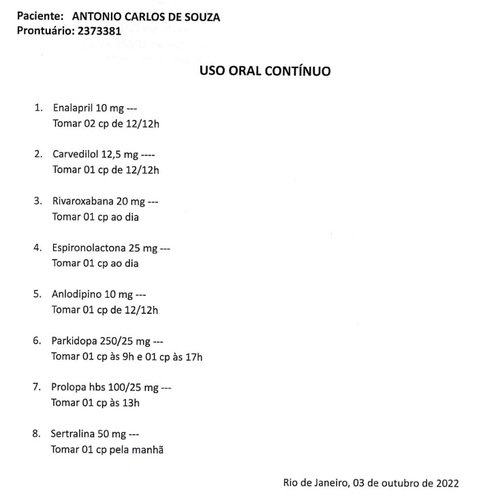 Abaixo segue a relação de medicações que ele está utilizando: