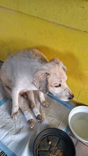 Apresentou um quadro de displasia coxofemoral grave, mas houve alteração na medula (sem diagnóstico ainda). Suas duas patas traseiras travaram e não se locomove mais.