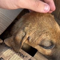 Saindo de uma via expressa, vi um filhotinho muito pequeno, quase não conseguindo ficar em pé, extremamente fraco.