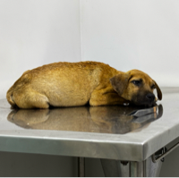 Ele está cheio de carrapatos e o veterinário identificou acúmulo de líquido na barriga, o que exige ultrassom e drenagem, além da consulta e tratamento inicial.