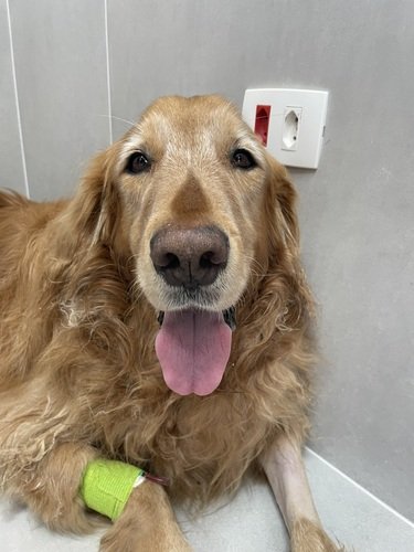 Esse é o Thominhas um Golden de 6 anos e 5 meses… a uma semana a vidinha dele mudou completamente, chegou no hospital veterinário tossindo sangue, foram feitos diversos exames, e após uma Tomografia de corpo inteiro foi diagnosticado com tumores no baço, fígado, costas e pulmão. O pulmão é o mais grave, onde dificulta a respiração dele, e para piorar toda essa situação do nosso amigo ele também está com a doença do carrapato onde piora todo o quadro. Ele já ficou internado duas vezes e agora segue com cuidados e suporte em casa, todo custo de hospital, exames e remédios são bem caros ainda mais para o tamanho dele.