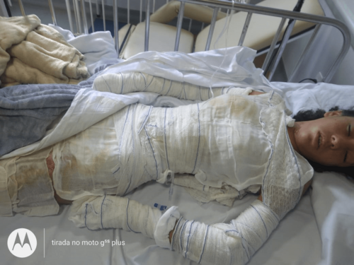Meu irmão Salvador é autônomo e está parado desde o acidente. Precisamos de ajuda para que tenhamos condições de permanecer ao lado de Ketilin, pois ela está 100% dependente de nossa presença. Além disso, posteriormente precisaremos arcar com custos de remédios e tratamento permanente em casa.
