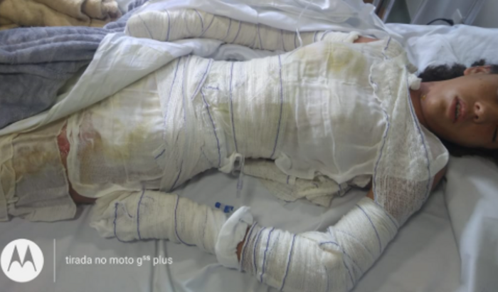 O que era pra ser um dia de confraternização, tornou-se um filme de terror. A churrasqueira explode, atingindo em cheio a menina e causando queimaduras de terceiro grau por praticamente todo o corpo.