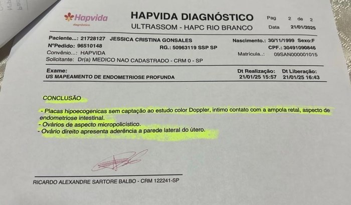 Meu nome é Jéssica e, no final de dezembro, fui diagnosticada com endometriose profunda. Desde então, venho enfrentando muitos desafios e dores intensas. Entre janeiro e maio, tentei um tratamento com um anticoncepcional específico, mas não obtive resultados satisfatórios, já que menstruava todos os meses, algo que eu não posso permitir.