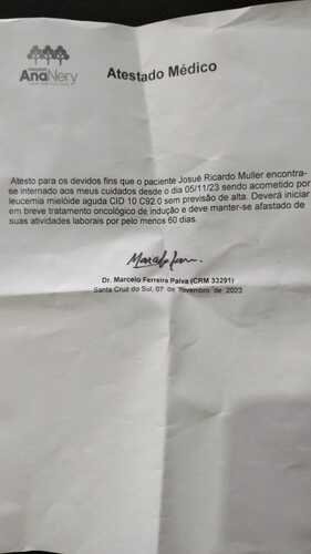 Meu irmão Josué tem 39 anos e foi diagnosticado com leucemia mielóide e está na UTI em estado grave. Precisamos de ajuda para pagar o hospital e medicamentos. Precisamos muito de você, nós ajude. Nesse mês de novembro de 2023 perdemos nosso pai e estamos lutando para não perder nosso irmão mais novo. Meu contato é 51999938801 para mais detalhes. Meu email é juliano.r.muller@gmail.com.