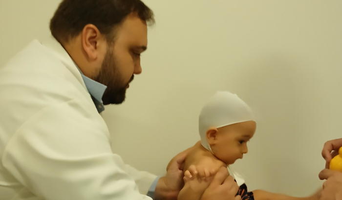 Meu nome é Mariana, sou mãe do Pedro Akira, atualmente com 8 meses, e ele acabou de ser diagnosticado com plagiocefalia, um tipo de assimetria craniana postural.