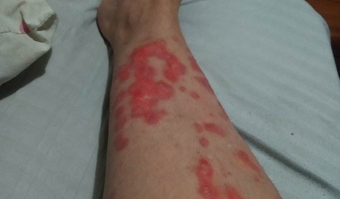 Minha perna, por enquanto, representa a parte do corpo com maior número de marcas e feridas, estando bem inflamada agora e dolorida.