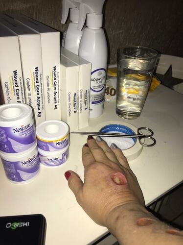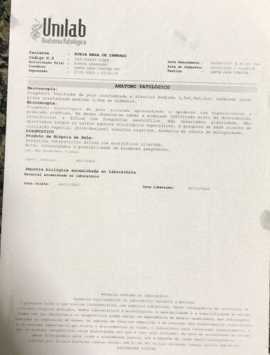 Encaminhada urgente pra uma Dermatologista em Amparo, que me encaminhou pra Unicamp aonde fui internada em Janeiro, pois minhas feridas estavam infeccionadas.