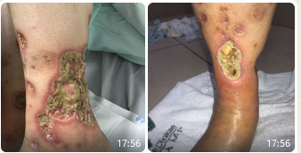 Internada dia 14 novembro, coletado biópsia e o que fizeram o correto tiraram, debridaram o tecido morto pra vir o saudável, mas não sabíamos o diagnóstico. E pra surpresa após 30 dias veio o Diagnóstico de Pioderma Gangrenoso, uma doença Autoimune, que nasci com ela e com a perda de todos da minha família ela se manifestou.