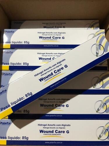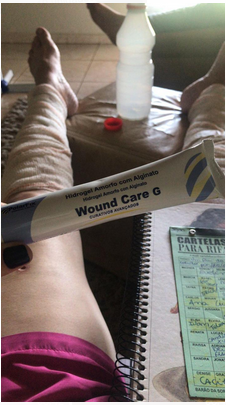 Há 50 dias iniciamos com o curativo inteligente, que você coloca na ferida e faz a troca e higienização a cada 5 dias e estamos tendo um resultado muito mais satisfatório, mas a caixa com 10 curativos custa R$ 1.200,00, sendo que uma caixa dá pra fazer o curativo em todas feridas, que retiro após 5 dias e utilizo uma outra caixa.