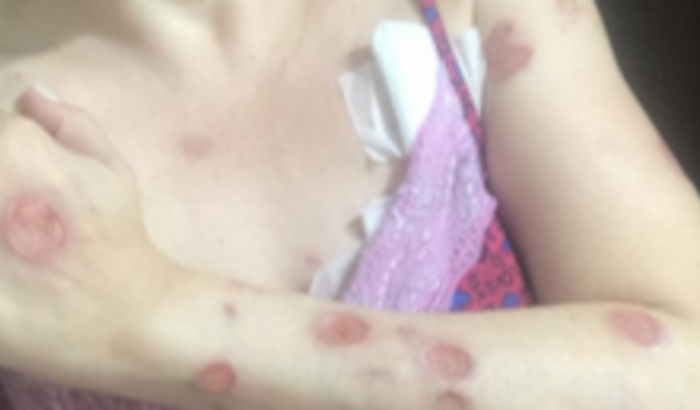 E a alergia já tinha tomado minhas pernas, barriga e costa.